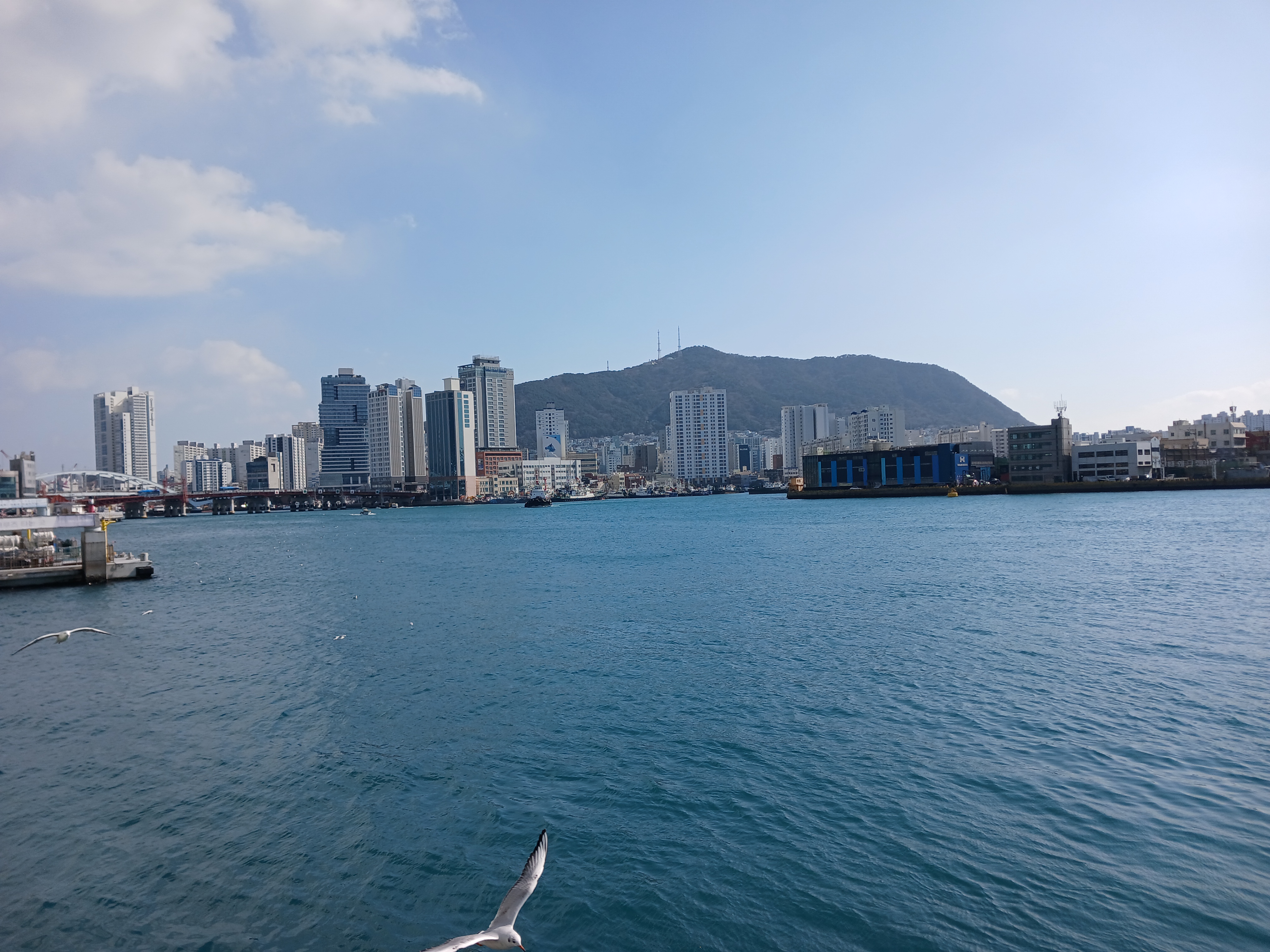 왼쪽 끝에 영도대교가 보인다.