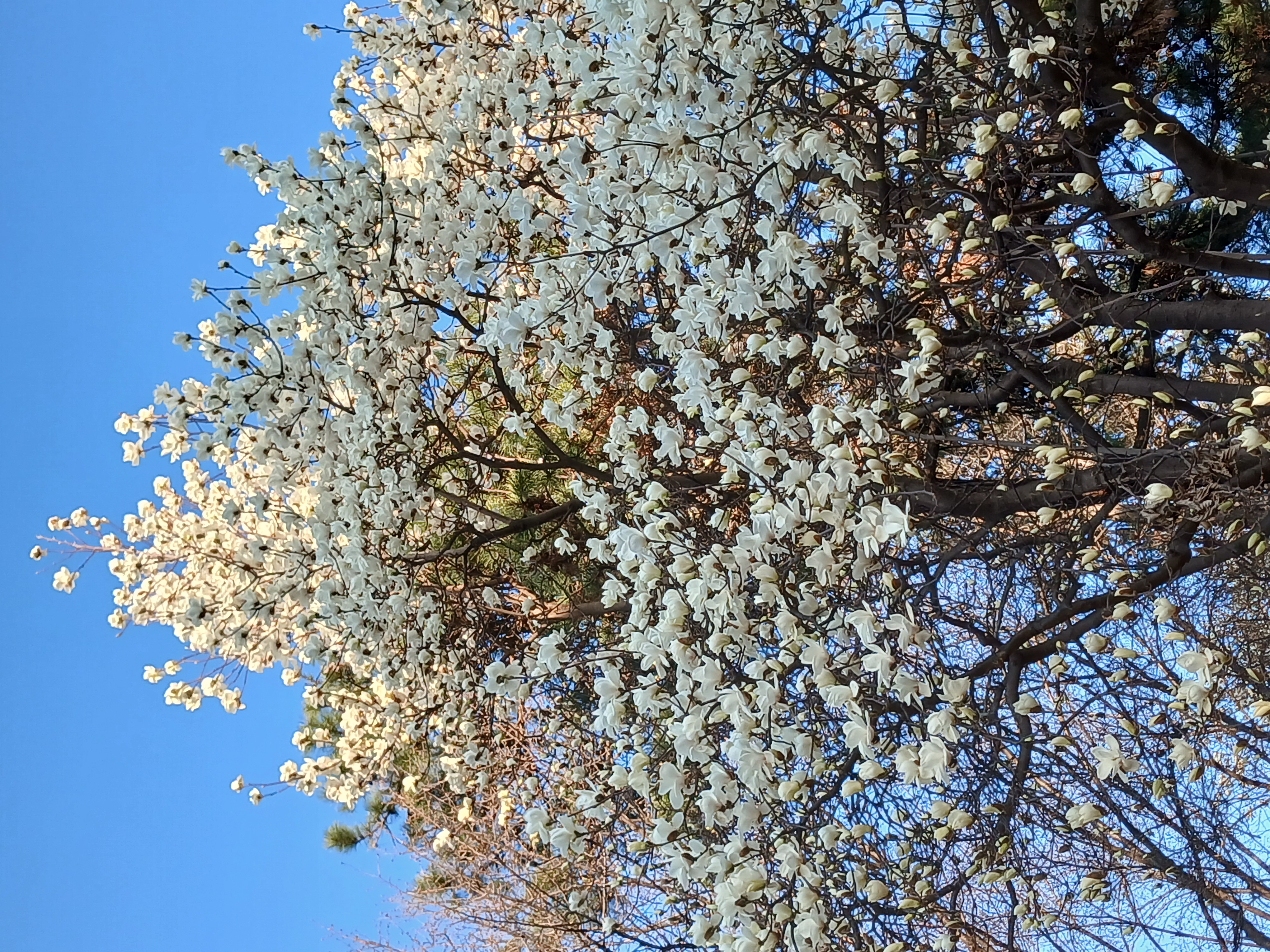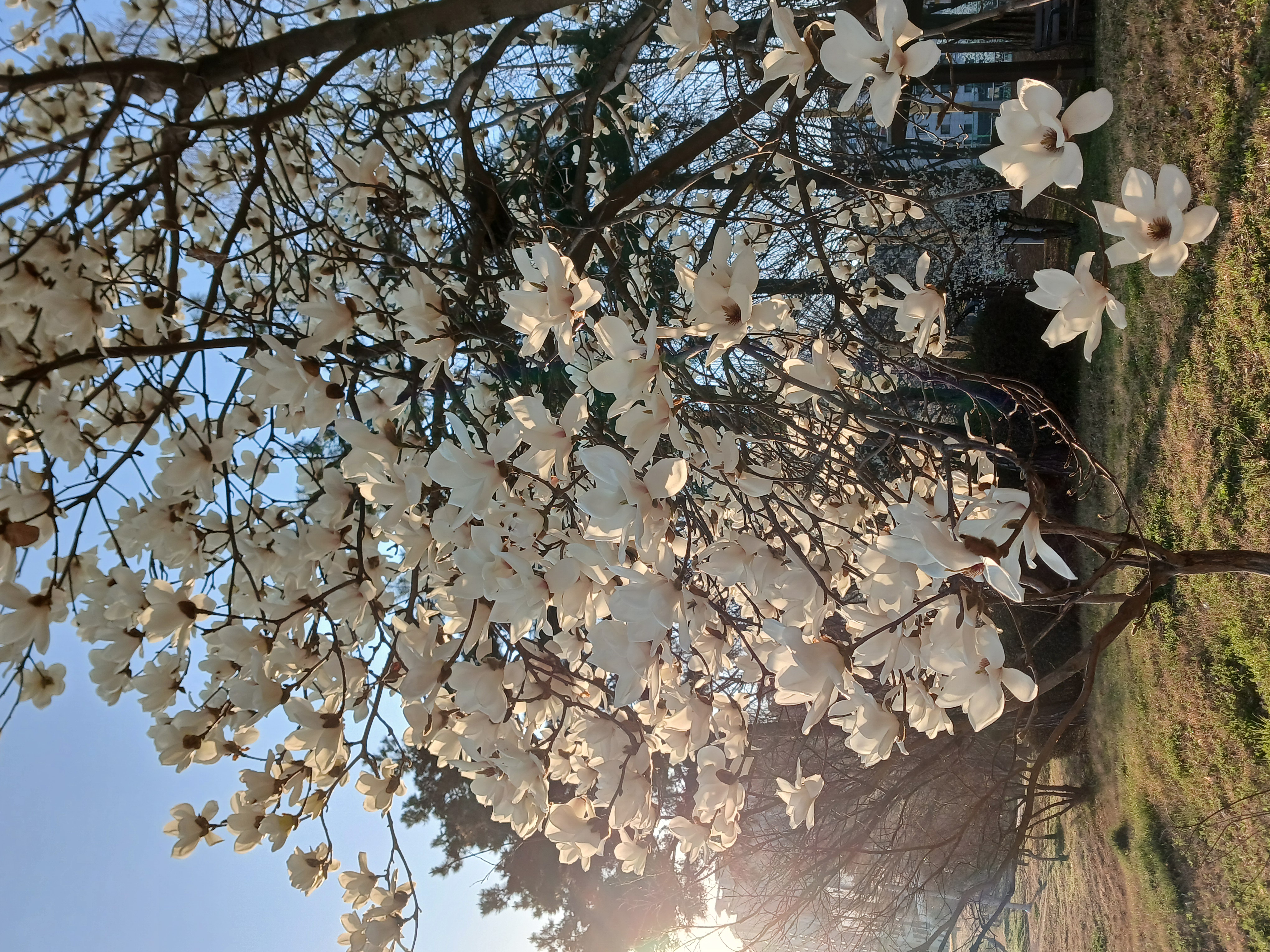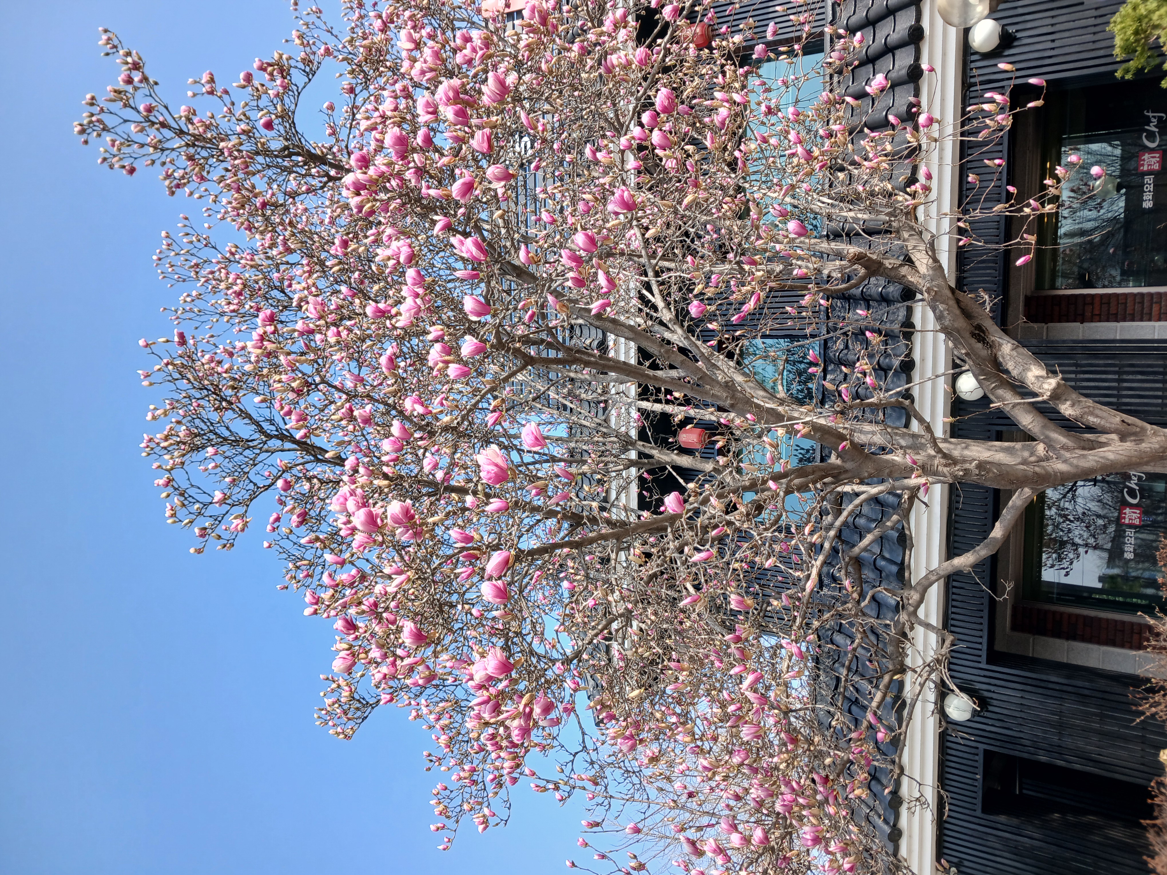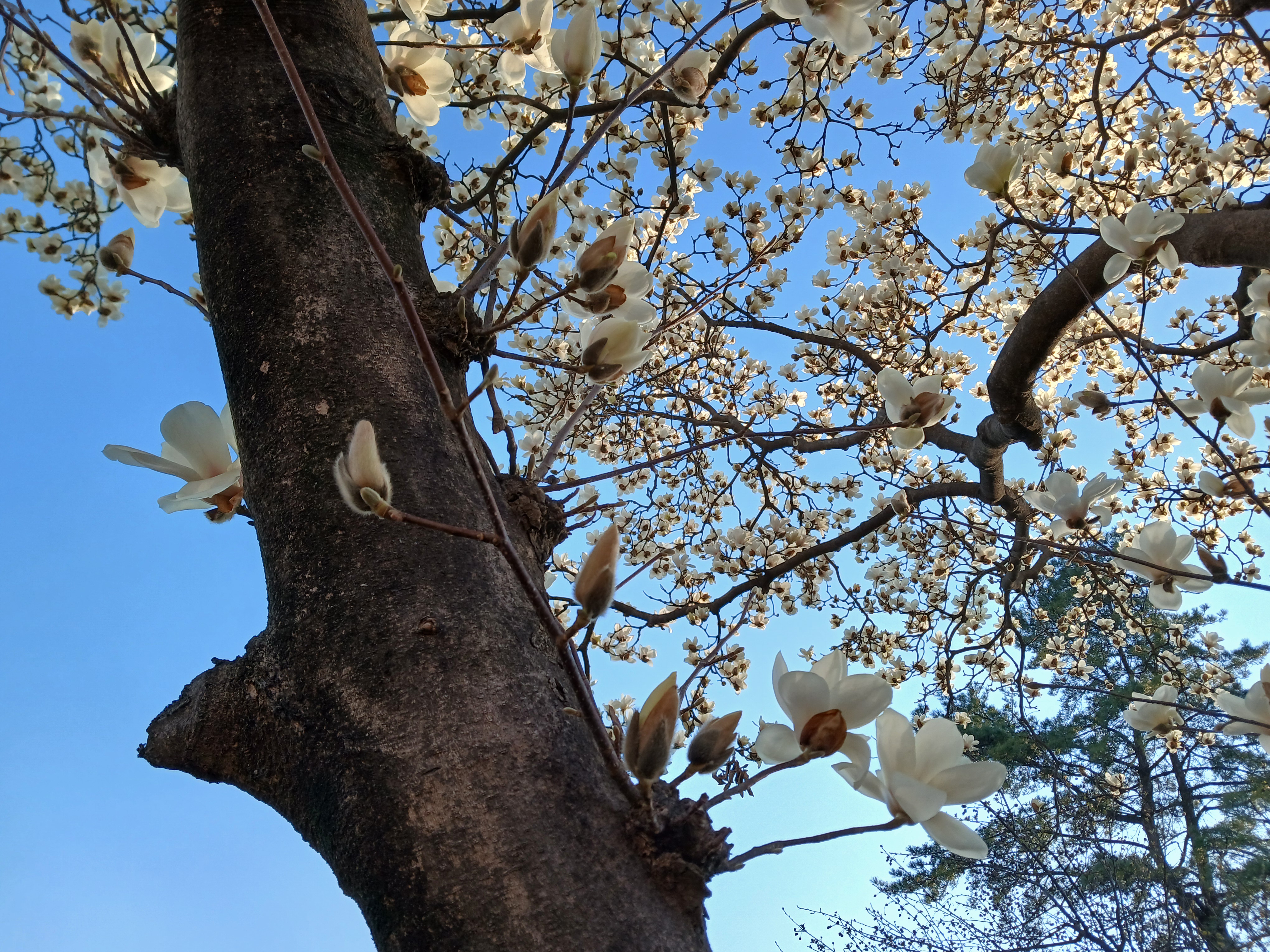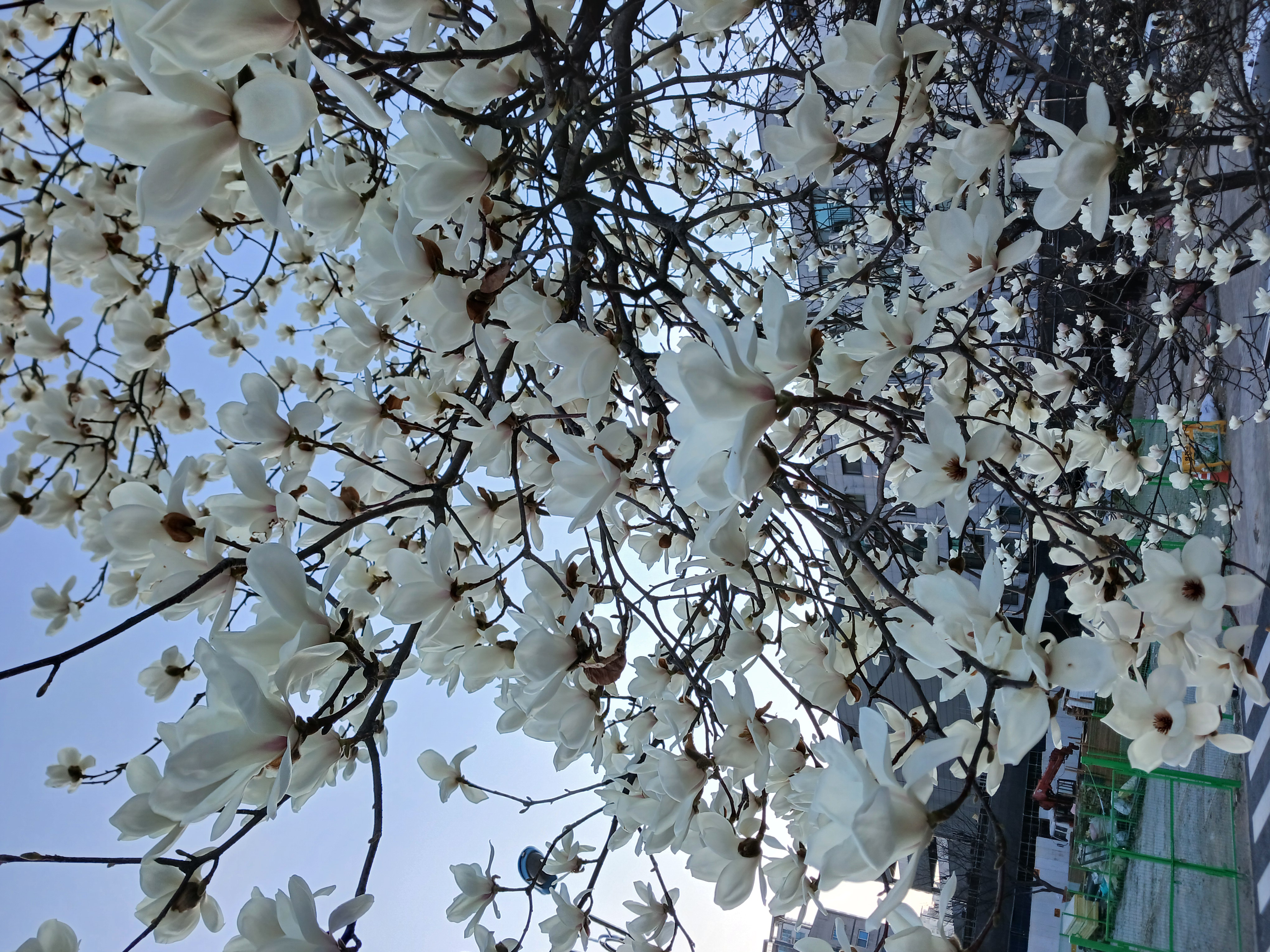 목련꽃 그늘 아래에서 걸었다.
